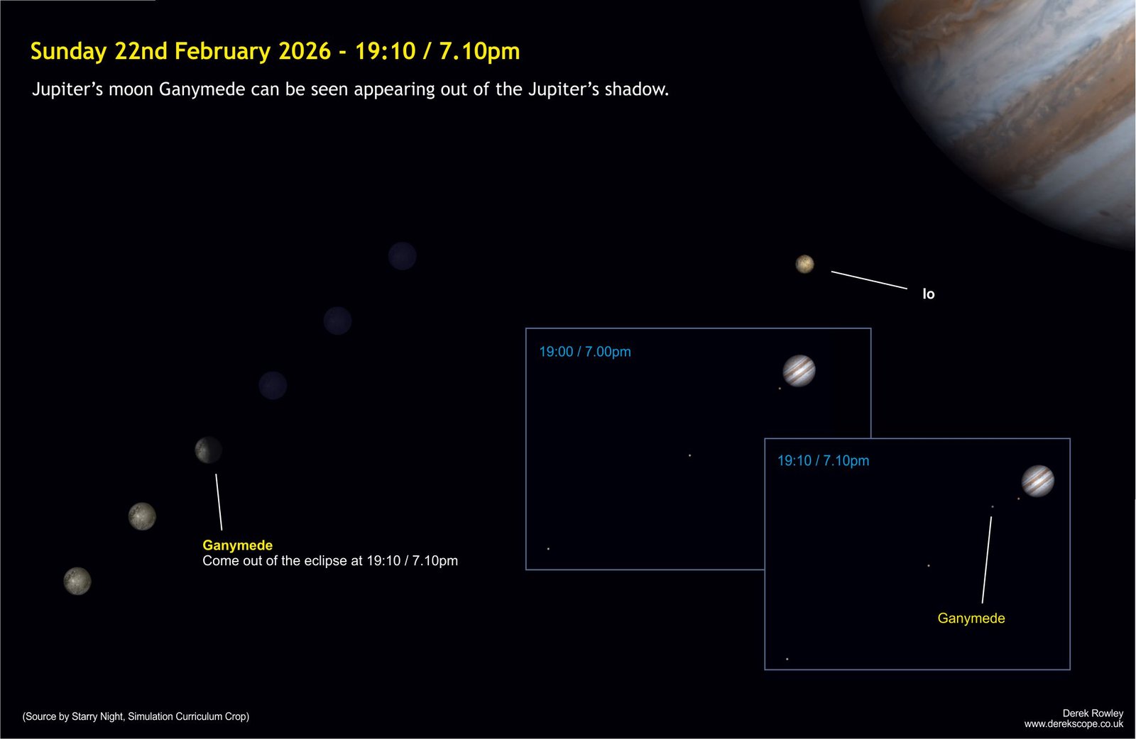 A vertical straight‑line alignment occurs when three of the Galilean moons — usually Io, Europa, Ganymede, or Callisto — appear in a single straight line. o