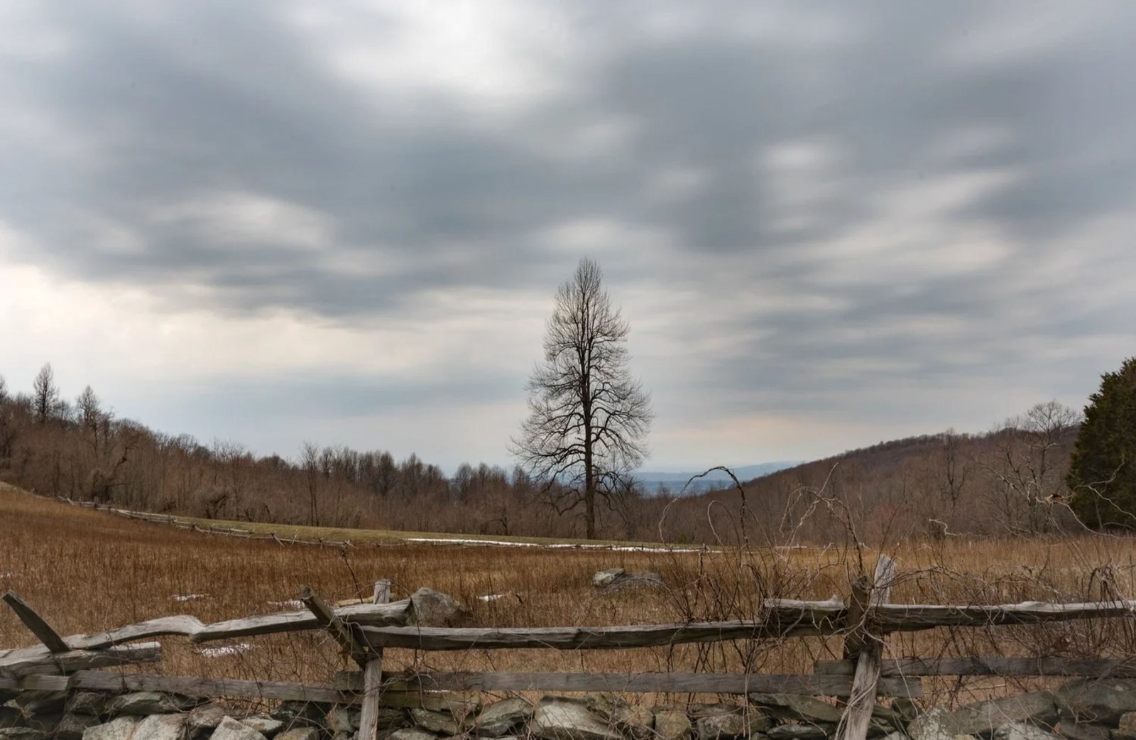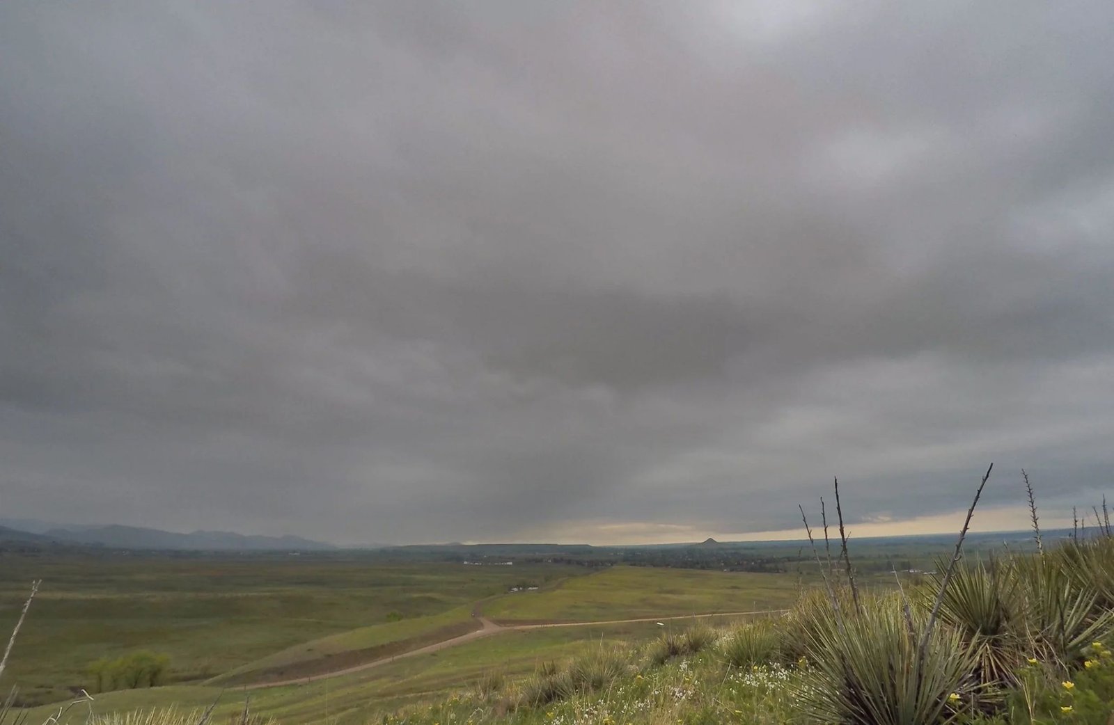 Features large, parallel bands or rolls that appear to radiate towards the horizon.