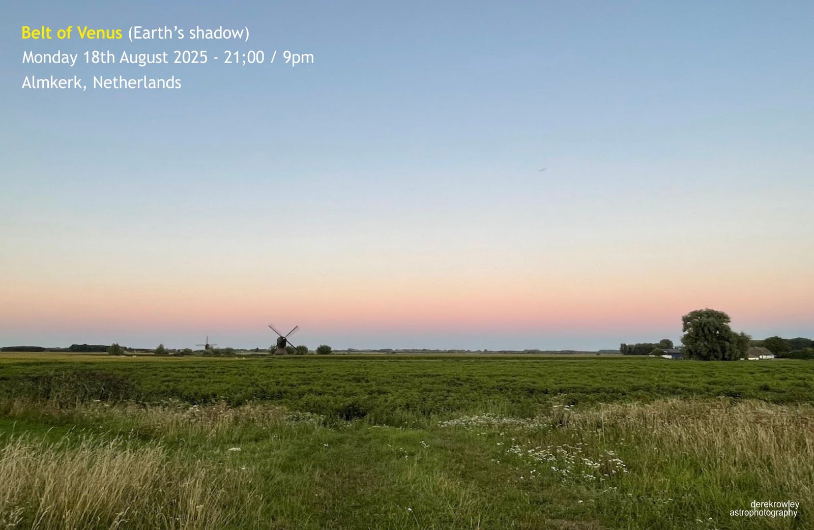 Just below the Belt of Venus, you may notice a darker band known as the Earth’s Shadow.