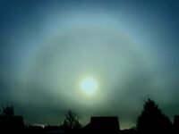 These rare meteorological optical phenomena occur when a thin layer of clouds moves past the sun.