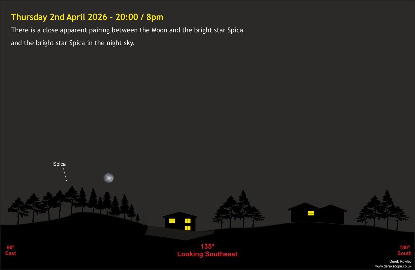 - Spica will be visible close to the Moon ~ easy to spot.