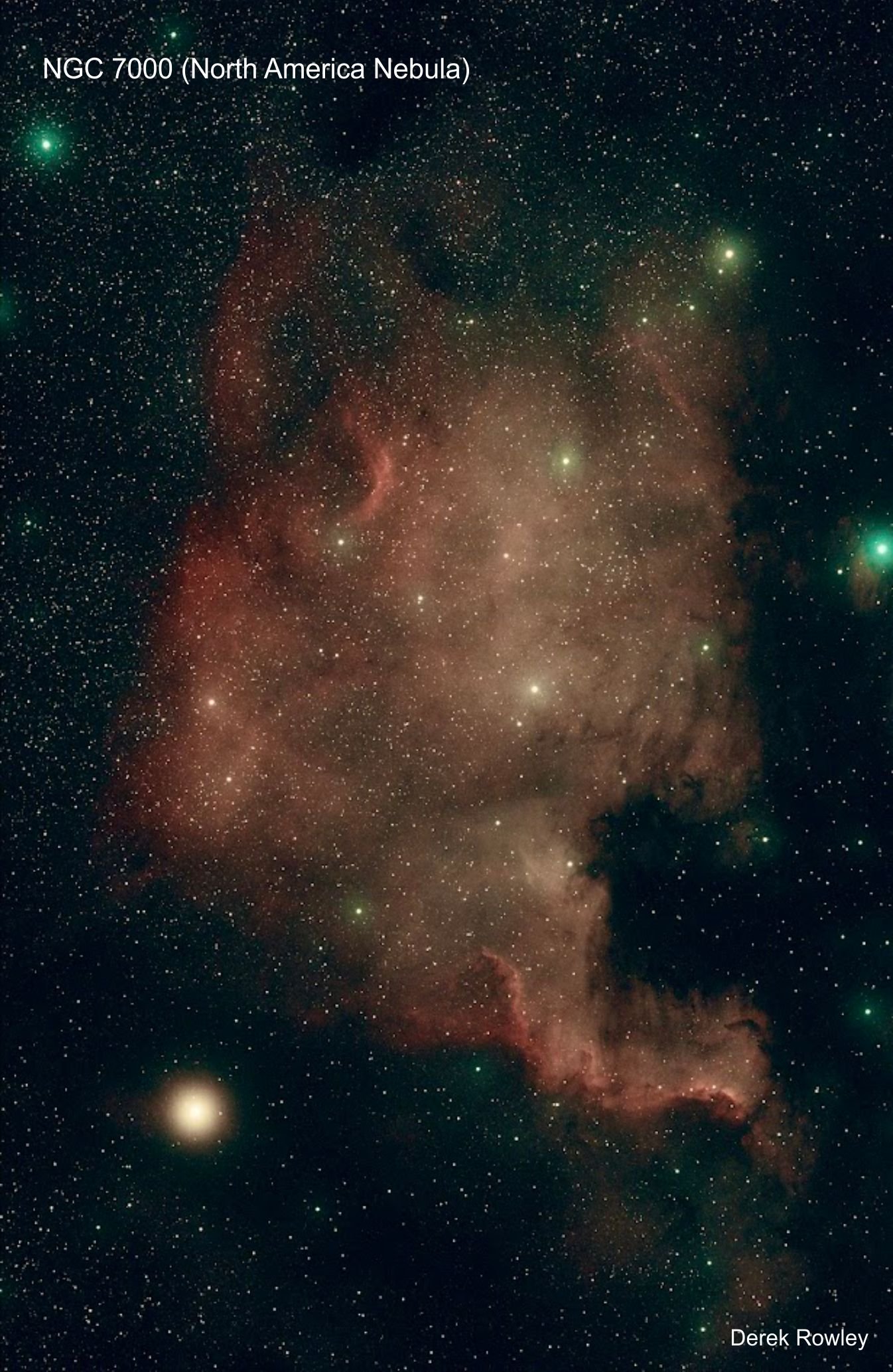 - Above NGC 7000 (The North America Nebula) is another visual delight. Its shape is uncannily reminiscent of the continent, with the “Gulf of Mexico” and “Florida” regions clearly outlined in emission nebula contours.